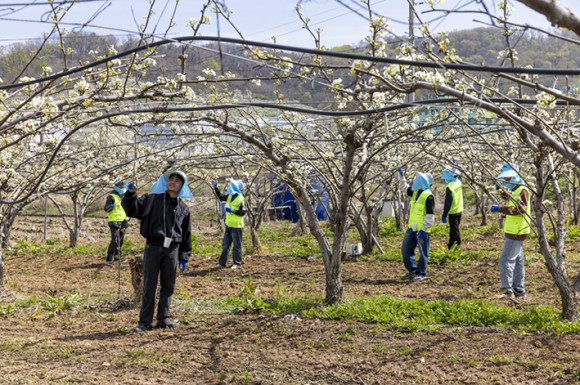 ¹è²É ÈÁ¢Àº ¹è³ª¹« ²É°¡·ç¸¦ ÀΰøÀûÀ¸·Î ¿Å±â´Â ÀÛ¾÷À¸·Î, °íǰÁú ¹è »ý»êÀ» À§ÇØ ÇʼöÀûÀÎ °úÁ¤ÀÌ´Ù. ƯÈ÷ ÃÖ±Ù ±âÈÄ º¯È¿Í ²Ü¹ú °¨¼Ò·Î ÀÚ¿¬ ¼öºÐÀÌ ¾î·Á¿öÁö¸é¼ ³ó°¡ÀÇ ºÎ´ãÀÌ Ä¿Áö°í ÀÖÀ¸¸ç, ¸¹Àº ÀηÂÀÌ ÇÊ¿äÇÑ ´ëÇ¥ÀûÀÎ ³ëµ¿Áý¾à ÀÛ¾÷ÀÌ´Ù.
