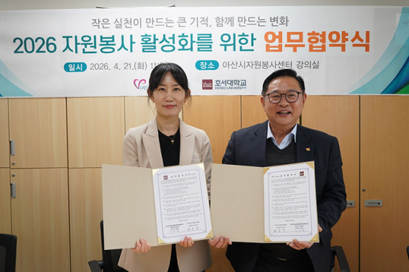 (»ç)¾Æ»ê½ÃÀÚ¿øºÀ»ç¼¾ÅÍ(¼¾ÅÍÀå äÁ¾º´, ÀÌÇÏ ÀÚ¿øºÀ»ç¼¾ÅÍ)¿Í È£¼´ëÇб³(ÃÑÀå °Àϱ¸) ±Û·Î¹úÀ¶ÇÕ´ëÇÐ ¹Ì·¡À¶ÇÕ½ºÄð »çȸº¹Áö»ó´ãÇаú(ÇаúÀå ±è¸®¿ø)´Â Áö¿ª»çȸ ÀÚ¿øºÀ»ç Ȱ¼ºÈ¸¦ À§ÇÑ ¾÷¹«Çù¾àÀ» ü°áÇß´Ù°í ¹àÇû´Ù.