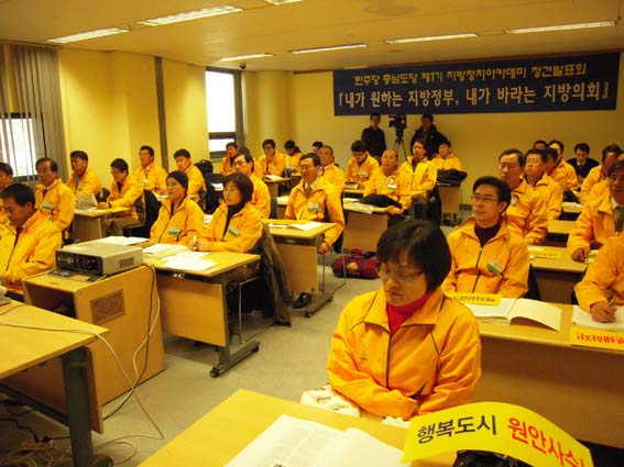 ¹ÎÁÖ´ç Ãæ³²µµ´ç(À§¿øÀå ¾ç½ÂÁ¶)Àº Áö³ 1¿ù 22ÀϺÎÅÍ 23ÀϱîÁö 1¹Ú2Àϰ£ ¿¬±â±º È«ÀÍ´ë ±¹Á¦¿¬¼ö¿ø¿¡¼ Á¦5ȸ Áö¹æ¼±°Å Ã⸶¿¹Á¤ÀÚ¸¦ ´ë»óÀ¸·Î Á¦1±â Áö¹æÁ¤Ä¡¾ÆÄ«µ¥¹Ì¸¦ °³ÃÖÇß´Ù. ¾ÆÄ«µ¥¹Ì¿¡´Â ¾ÈÈñÁ¤ ÃÖ°íÀ§¿øÀ» ºñ·ÔÇÑ ½ÃÀ塤±º¼ö Ã⸶¿¹Á¤ÀÚ, ±¤¿ª ¹× ±âÃÊÀÇ¿ø Ã⸶¿¹Á¤ÀÚ µî 50¿©¸íÀÌ Âü¼®ÇØ ½ÃÁ¾Àϰü ÁøÁöÇÑ ºÐÀ§±â ¼Ó¿¡¼ Áö¹æ¼±°Å ½Â¸®¸¦ À§ÇÑ °áÀǸ¦ ´ÙÁ³´Ù. 22ÀÏ °³ÃÖµÈ ÀÔÇнĿ¡¼´Â ÇöÀç ±¹È¸ ÀÇ¿øÈ¸°ü¿¡¼ Çູµµ½Ã ¼öÁ¤¾È °á»ç¹Ý´ë, ¿ø¾È»ç¼ö¸¦ À§ÇØ »è¹ß ´Ü½Ä ³ó¼ºÁßÀÎ ¾ç½ÂÁ¶ µµ´çÀ§¿øÀåÀ» ÁöÁöÇϰí, Âü°¡ÀÚ Àü¿øÀÌ À̸í¹Ú Á¤±ÇÀÇ Çູµµ½Ã ¼öÁ¤¾È °á»ç¹Ý´ë¿Í Çູµµ½Ã ¿ø¾È»ç¼öÀÇ ÀÇÁö¸¦ Ç¥¸íÇÏ´Â °áÀǹ®À» äÅÃÇß´Ù. »è¹ß´Ü½Ä ÁßÀ¸·Î ¾ÆÄ«µ¥¹Ì¿¡ Âü¼®ÇÏÁö ¸øÇÑ ¾ç½ÂÁ¶ µµ´çÀ§¿øÀåÀº ¼¸éÀλ縻¿¡¼ ¡°6¡¤2 Áö¹æ¼±°Å´Â ÇàÁ¤Á߽ɺ¹ÇÕµµ½Ã·Î¼ÀÇ ¼¼Á¾½Ã¸¦ »ç¼öÇÏ´À³Ä ¸¶´À³ÄÀÇ °¥¸²±æÀ̸ç, ¿ª»çÀûÀÎ ºÐ¼ö·ÉÀÌ µÉ °Í´Ù. µû¶ó¼, ¼¼Á¾½Ã ¿ø¾È»ç¼ö¸¦ À§Çؼ 6¡¤2 Áö¹æ¼±°Å´Â ¾Ð½ÂÀ» °ÅµÖ¾ß Çϸç, 6¡¤2 Áö¹æ ¼±°ÅÀÇ ¾Ð½ÂÀ» À§Çؼ ¼¼Á¾½Ã ¿ø¾ÈÀ» ¹Ýµå½Ã »ç¼öÇØ¾ß ÇÑ´Ù. ÀÌ ¿ª»çÀû Ã¥¹« ¾Õ¿¡ ¿©·¯ºÐ°ú Á¦°¡ ÇÔ²² ¼ÀÖ´Ù.¡±¶ó¸ç Çູµµ½Ã ¿ø¾È»ç¼öÀÇ È®°íÇÑ ÀÇÁö¸¦ ¹àÇû´Ù. Ãæ³²µµÁö»ç Ã⸶°á½ÉÀ¸·Î Ã⸶¿¹Á¤ÀÚµéÀÇ ¸¹Àº °ü½É°ú ÁÖ¸ñÀ» ¹Þ°í ÀÖ´Â ¾ÈÈñÁ¤ ÃÖ°íÀ§¿ø(¸Ç À§ »çÁø)Àº ¡®Ãæ³²ÀÇ ºñÀü°ú ¹ÎÁÖ´çÀÇ ¿ªÇÒ¡¯À̶ó´Â ÁÖÁ¦ÀÇ °ÀÇ¿¡¼, ¡°±èÁ¾Çʾ¾ÀÇ 2ÀÎÀÚ·ÐÀº ¿µ¿øÇÑ 3µîÀü·«ÀÌ´Ù. ÀÌÁ¦´Â ÃæÃ»ÀÇ ±â»óÀ» ¹Ù²ÙÀÚ. ¿ì¸®°¡ ¼Ò½Å°ú Á¤Ã¥À¸·Î ½Â¸®ÇØ ÃæÃ»ÀÇ »õ·Î¿î ¿ª»ç¸¦ ¾²ÀÚ.¡±°í ÈûÁÖ¾î °Á¶Çϰí, ¡°À̹ø Áö¹æ¼±°Å´Â À̸í¹Ú Çѳª¶ó´ç Á¤±Ç¿¡ ´ëÇÑ Áß°£Æò°¡´Ù. Ãæ³²µµÁö»ç¿¡ Ãâ¸¶ÇØ ¹ÎÁÖ´çÀÇ ½Â¸®¸¦ À§ÇØ, À̸í¹Ú Çѳª¶ó´ç Á¤±Ç ½ÉÆÇÀ» À§ÇØ ÃÖ¼±À» ´ÙÇÒ °ÍÀÌ´Ù.¡±¶ó°í ÈûÂù °¢¿À¸¦ ¹àÇô Å« È£ÀÀ¸¦ ¹Þ¾Ò´Ù. ³ª¼Ò¿ ¼Ãµ±º¼ö´Â ¡®º¹Áöµµ½Ã·ÎºÎÅÍ ¹è¿î´Ù¡¯´Â ÁÖÁ¦ÀÇ °ÀÇ¿¡¼ Áö¹æÀÚÄ¡´ÜüÀåÀ¸·Î¼ ¿©·¯ °æÇè°ú »ç·Ê¸¦ ¸»Çϸç, ¡°¾î·Æ°í Èûµé´õ¶óµµ ²ö±â¸¦ °¡Áö°í ¹ÎÁÖ´çÀÇ ½Â¸®¸¦ À§ÇØ ÇÔ²² ³ë·ÂÇÏÀÚ¡±°í ¸»ÇØ Å« ¹Ú¼ö¸¦ ¹Þ¾Ò´Ù. ¹ÎÁÖ´ç Ãæ³²µµ´çÀº Áö³ 1¿ù 20ÀÏ °³ÃÖµÈ »ó¹«À§¿øÈ¸¿¡¼ ´ç³»¿Ü Àλç 15¸íÀ¸·Î °øÁ¤ÇÏ°í ½Å¼ÓÇÑ Èĺ¸ÀÚ °øÃµÀ» À§ÇÑ ¡®°øÃµ½É»çÀ§¿øÈ¸¡¯ ±¸¼ºÀ» ÀǰáÇϰí, °¢ Áö¿ªÀ§¿øÈ¸º° ÀӽôëÀÇ¿ø´ëȸ¸¦ °³ÃÖÇØ Áö¿ªÁ¶Á÷À» Á¤ºñÇÏ´Â µî ´Ù°¡¿À´Â Áö¹æ¼±°Å ½Â¸®¸¦ À§ÇØ ³ë·ÂÇϰí ÀÖ´Ù.