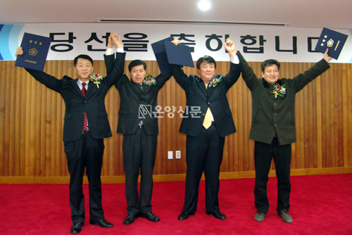 | | | ¡ã (ÁÂÃøºÎÅÍ) ¸ÍÁØÀç, À±°æ»ó, ÀÌÁÖ¼±, Á¶½ÂÇü Á¶ÇÕÀå ´ç¼±ÀÚµé ¸ð½À | Áö¹æ¼±°ÅÀÇ ÇØÀÎ 2010³â °ü³» ù ¼±°ÅÀÎ Á¶ÇÕÀå ¼±°Å°¡ 26ÀÏ ½Ç½ÃµÆ´Ù. ÅÁÁ¤¡¤¼Û¾Ç¡¤ÀÎÁÖ¡¤¾Æ»êÃàÇù 4°³ÀÇ Á¶ÇÕÀå¼±°Å°¡ µ¿½Ã¿¡ ½Ç½ÃµÆÀ¸¸ç, ½Ã¹Î¹®Èº¹Áö¼¾ÅÍ(±¸ °æÂû¼)¿¡¼ °³Ç¥°¡ ÀÌ·ïÁ³´Ù.
