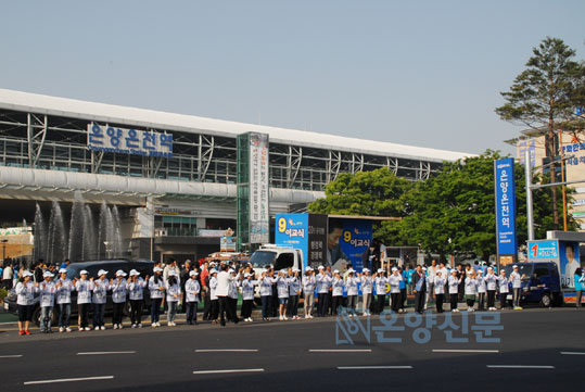 ¡°¾Æ»ê ½Ã¹ÎµéÀÇ ÀÇÁö¸¦ Áþ¹âÀº °ÍÀº ¾Æ»êÀÇ ÀÚÁ¸½ÉÀ» Áþ ¹âÀº °Í°ú ´Ù¸§ ¾Æ´Ï´Ù. ÀÌÁ¦ ¾Æ»ê½Ã¹ÎÀÌ ³ª¼ ±¸°ÜÁø ¾Æ»êÀÇ ÀÚÁ¸½ÉÀ» ´Ù½Ã ¼¼¿ö¾ß ÇÑ´Ù¡± À̱³½Ä ¾Æ»ê½ÃÀå Èĺ¸(¹«¼Ò¼Ó)´Â 5¿ù 20ÀÏ ¿ÀÀü, °ø½Ä¼±°Å °³½ÃÀÏ Ã¹ À¯¼¼·Î ½Ã¹Îµé¿¡°Ô ¾Æ»êÀÇ ÀÚÁ¸½ÉÀ» ¼¼¿ö´Þ¶ó°í È£¼ÒÇß´Ù. ¿Â¾ç¿ª ºÐ¼ö±¤Àå ¾Õ¿¡¼ ¿¸° ù À¯¼¼¿¡¼ ÀÌ È帴 ÀڽŰú ¿¬°üµÈ ÀÚÀ¯¼±Áø´çÀÇ °øÃµ°ú ¹øº¹ µî°ú °ü·ÃÇØ ¡°½Ã¹Îµé°ú ´ç¿øÀÇ ÀÇÁö¸¦ Áþ¹âÀº ºñ¹ÎÁÖÀûÀ̰í ÀÇȤ Åõ¼ºÀÌÀÇ °øÃµ¡±À̶ó¸ç ¡°À̹ø ¼±°Å¸¦ ÅëÇØ ºÐ¸íÇÏ°Ô ¹Ù·ÎÀâ¾Æ ¾Æ»ê°ú ¾Æ»êÀÎÀÇ ÀÚÁ¸½ÉÀ» ¼¼¿ö´Þ¶ó¡±°í ´çºÎÇß´Ù. ¿ª ±¤Àå ¾Õ 3°Å¸® Áß¾Ó¿¡ Á¦ÀϸÕÀú ÀÚ¸®ÇÑ ÀÌ È帴 ¡°30³â °øÁ÷»ýȰÀ» °É°í ºñ¸®¿Í ¹«°üÇÏ´Ù¡±°í ±âÀÚȸ°ß µîÀ» ÅëÇØ ºÐ¸íÈ÷ ¹àÇûÀ¸³ª °æ¼± Å»¶ô È帵éÀÌ À̸¦ Á¤Ä¡ÀûÀ¸·Î ÀÌ¿ë, ¹«°í¿Í ÇãÀ§»ç½Ç À¯Æ÷ µîÀÇ ¹æ¹ýÀ» µ¿¿øÇØ ´ç½Ã °øÃµÀÚ¿´´ø ÀÌ Èĺ¸ÀÇ À̹ÌÁö¸¦ Å©°Ô ¼Õ»ó½ÃÄ×À¸¸ç, ¼±Áø´ç Áß¾Ó´ç¿¡¼ ¸¶Àú ÀÌÀ¯¸¦ ¹àÈ÷Áö ¾Ê°í, Å뺸µµ ¾øÀÌ °øÃµÀ» öȸÇÑ °ÍÀº Èĺ¸ °³ÀÎÀÇ ¹®Á¦¸¦ ³Ñ¾î ¾Æ»ê°ú ¾Æ»êÀÎÀ» ¿ì·ÕÇÑ Ã³»çÀÏ ¼ö¹Û¿¡ ¾ø´Ù¸ç °·ÂÇÑ ¿º¯À» ÅäÇß´Ù. ÀÌ È帴 ÀÌ¾î ¡°¾Æ»êÀÇ ¹ßÀüÀ» ²Þ²Ù´Â, ¾Æ»êÀÎÀÇ ÇÑ»ç¶÷À¸·Î¼ ´õ ÀÌ»ó ÂüÀ» ¼ö ¾ø±â¿¡ ÀÌ ÀÚ¸®¿¡ ¼¹´Ù¡±¸ç ¡°¼±°Å¸¦ ÅëÇØ ¾Æ»êÀÇ µµ¾à°ú Á¤Ä¡¹ßÀüÀ» À§ÇÑ ½Ã¹ÎÇõ¸íÀ» ÀÏÀ¸ÄÑ ´Þ¶ó¡±°í È£¼ÒÇß´Ù.