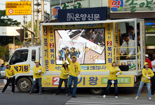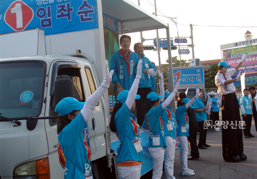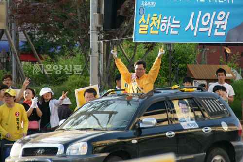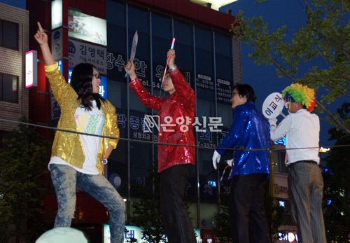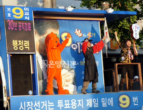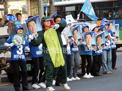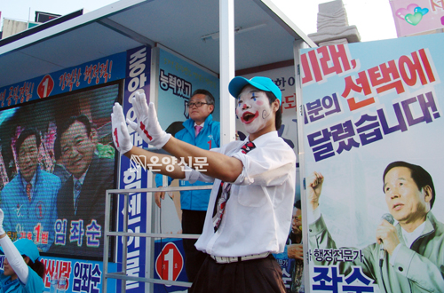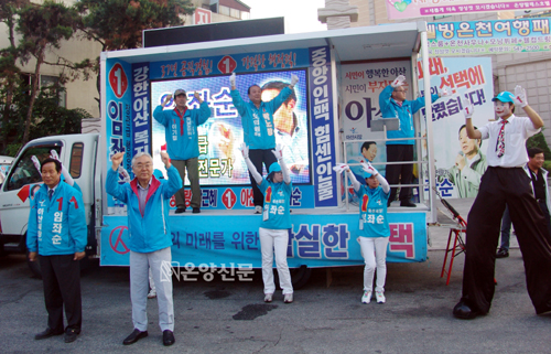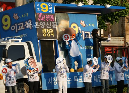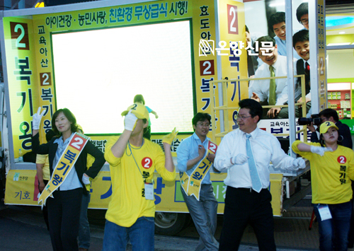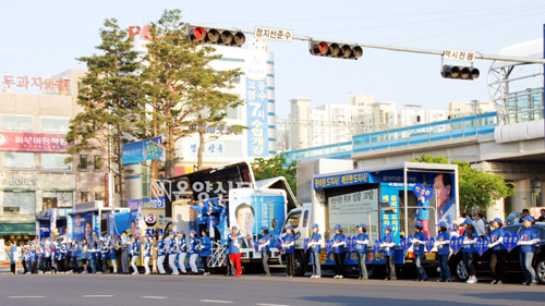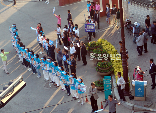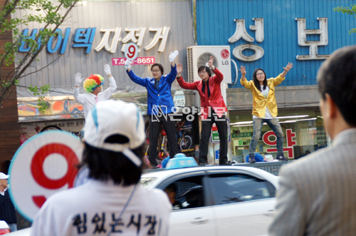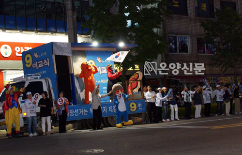 6¿ù 1ÀÏ. ¼±°Å¸¦ ¾Õ µÐ ¸¶Áö¸· ³¯ Àú³áÀÎ ¿ÀÈÄ 6½ÃºÎÅÍ ¿Â¾ç½Ã³» Á߽ɰ¡´Â È帵éÀÇ ¸¶Áö¸· À¯¼¼ÀüÀ¸·Î ¶°µé½âÇß´Ù. °¢ Èĺ¸Ãø¿¡¼´Â ´Ù¾çÇÑ ¼Òǰ°ú ÇÔ²² ·Î°í¼Û¿¡ ¸ÂÃç À²µ¿°ú ±¸È£·Î À¯¼¼ÀüÀ» ÆîÄ¡¸ç, Áö³ª°¡´Â ½Ã¹ÎµéÀÇ ´«±æÀ» ²ø¾î ¸ð¾Ò´Ù. | | | ¡ã ¤½¸¶Áö¸· À¯¼¼ ÇöÀå ¸ð½À |