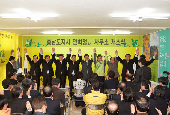 ¾ÈÈñÁ¤ ¹ÎÁÖ´ç Ãæ³²µµÁö»ç ¿¹ºñÈĺ¸ÀÇ ¼±°Å»ç¹«¼Ò °³¼Ò½ÄÀÌ Áö³ 4¿ù 3ÀÏ ¿ÀÈÄ 2½Ã ´ç¿ø ¹× ÁöÁöÀÚ µî 500¿©¸íÀÌ Âü¼®ÇÑ °¡¿îµ¥ ¿·È´Ù. ¾È ¿¹ºñÈĺ¸ ÃøÀº õ¾ÈÇÔ Ãß³ä ºÐÀ§±â¸¦ °¨¾ÈÇØ À̳¯ °³¼Ò½ÄÀ» °£¼ÒÇÏ°Ô Ä¡¸£±â·Î ÇßÀ¸³ª ¾ç½ÂÁ¶ ¹ÎÁÖ´ç Ãæ³²µµ´ç À§¿øÀå(õ¾È °©), ¹Úº´¼® ÀÇ¿ø(´ëÀü ¼±¸ °©), ±è¿ø¿õ ¹ÎÁÖ´ç ´ëÀü½ÃÀå ¿¹ºñÈ常¦ ºñ·ÔÇÑ ´ëÀü Ãæ³²±Ç Á¤Ä¡ÀεéÀÌ ´ë°Å Âü¼®Çß°í, À念´Þ ÀüÀÇ¿ø°ú ¹é¿ø¿ì(°æ±â ½ÃÈï), ¹éÀçÇö(°æ±â ±¤¸í) ÀÇ¿ø µî ´Ù¸¥ Áö¿ª Á¤Ä¡Àε鵵 ´Ù¼ö Âü¼®ÇØ ¿±â°¡ ³ô¾Ò´Ù. Âü¼®ÀÚµéÀº ¾È ¿¹ºñÈĺ¸¿ÍÀÇ ¿ìÀǸ¦ º¸¿©ÁÖ¸ç ÁöÁö¸¦ È£¼ÒÇØ ûÁßµé·ÎºÎÅÍ ¶ß°Å¿î È£ÀÀÀ» ¹Þ¾Ò´Ù. Ãà»ç¿¡ ³ª¼± ¾ç½ÂÁ¶ ÀÇ¿øÀº ¡°¾ÈÈñÁ¤ ¿¹ºñÈ帴 ´ëÅë·ÉÀ» ´ç¼±½ÃŰ°íµµ ´Ã °íÃʸ¸ ´çÇß´Ù¡±¸ç ¡°¾ÈÈñÁ¤¿¡°Ô ÀÏÇÒ ±âȸ¸¦ ÁÖ´Â °ÍÀÌ ³ë¹«Çö ´ëÅë·É¿¡°Ô Áø ºúÀ» °±°í ¼¼Á¾½Ã »ç¼ö µî ÃæÃ»µµ¸¦ ¹ßÀü½ÃŰ´Â ±æ¡±À̶ó°í °Á¶Çß´Ù. ¹Úº´¼® ÀÇ¿øÀº ¡°ÃæÃ»µµ¹ÎÀÌ ÀÚÀ¯¼±Áø´çÀ» ´ëÆø ¹Ð¾îÁáÁö¸¸ ¼±Áø´çÀÇ ¿ªÇÒÀÌ ¾ø¾ú´Ù¡±°í ÁöÀûÇÏ¸ç ¡°¾ÈÈñÁ¤ÀÌ¾ß ¸»·Î ¹ÎÁÖÁÖÀÇ ÈÄÅð¿Í ±¹°¡±ÕÇü¹ßÀü À§±â¸¦ ±Øº¹ÇØ¾ß ÇÏ´Â ½Ã´ëÀû ¿ä±¸¿¡ ºÎÀÀÇÏ´Â ÀûÀÓÀÚÀ̰í Ãæ³²¹ßÀüÀ» ÀÌ·ê ¼ö ÀÖ´Â ¹ÎÁÖ´çÀÇ Á߽ɡ±À̶ó¸ç ÁöÁö¸¦ È£¼ÒÇß´Ù. ÀÌ¾î µî´ÜÇÑ ¾ÈÈñÁ¤ ¿¹ºñÈ帴 ¡°Ã¶»õ Á¤Ä¡ÀÇ Ã¥ÀÓÀº ¹«¿øÄ¢ÇÏ°Ô ¿Ô´Ù °¬´ÙÇÏ´Â ÁöµµÀÚ¿¡°Ô ÀÖ´Ù¡±¸ç ¡°Ãæ³²µµÁö»ç µµÀüÀº ¼Ò½Å°ú ¿øÄ¢À» ÁöŰ´Â ÃæÃ»µµÀÇ ÁöµµÀÚ·Î Ä¿º¸°Ú´Ù´Â ´ÙÁü¡±À̶ó°í Ã⸶¹è°æÀ» ¹àÇû´Ù. ¾È ¿¹ºñ È帴 ¶Ç, ¡°ÃæÃ»µµÀÇ ÀÌÀÍÀ» Áö۱â À§ÇØ Áö¿ª´ç Áß½ÉÀ¸·Î ¹¶Ä¡´Â °ÍÀº ´Ù¸¥ Áö¿ªÀÇ ¹Ý¹ßÀ» ºÒ·¯ °á±¹ 3µî ¹Û¿¡ ÇÒ ¼ö ¾ø´Â ½ÇÆÐ Àü·«¡±À̶ó¸ç ¡°¿µ³²°ú È£³²µµ µ¿ÀÇÇÒ ¼ö ÀÖ´Â ±¹°¡±ÕÇü¹ßÀüÀ» Á¦½ÃÇϰí ÁÖµµÇÏ´Â 1µîÀü·«À» Ãß±¸ÇØ¾ß ÁøÁ¤ÇÑ Ãæ³²ÀÇ ÀÌÀÍÀ» º¸ÀåÇÒ ¼ö ÀÖ´Ù¡±´Â Ãæ³²ÀÇ ¼º°øÀü·«À» Á¦½ÃÇØ ¶ß°Å¿î ¹Ú¼ö¸¦ ¹Þ¾Ò´Ù. ÇÑÆí, À̳¯ °³¼Ò½ÄÀº ¾ÈÈñÁ¤ ¿¹ºñÈĺ¸ÀÇ ÆÒ±îÆä ¡®¾Æ³ª¿ä¡¯ ȸ¿øµéÀÌ °¢Á¾ ÀÚ¿øºÀ»ç Ȱµ¿À» Àü°³ÇÏ°í ²É´Ù¹ß°ú Çʽ ±â¿ø ¶± µîÀ» Àü´ÞÇØ ´«±æÀ» ²ø¾ú´Ù.