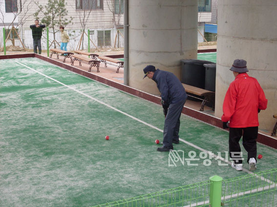 ¡ã ÇϺΰø°£¿¡ ¸¶·ÃµÈ °ÔÀÌÆ®º¼Àå¿¡¼­ ³ëÀεéÀÌ ¿¬½ÀÇϰí ÀÖ´Ù.