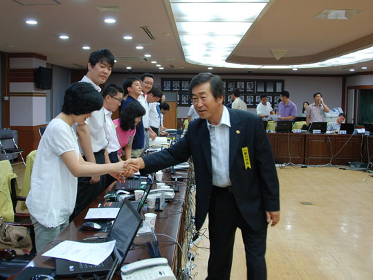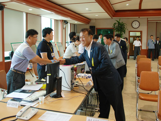 ¾Æ»ê½ÃÀÇȸ(ÀÇÀå Á¶±âÇà)´Â Áö³ 8¿ù 17ÀÏ ¿ÀÀü 10½Ã40ºÐºÎÅÍ ¾Æ»ê±³À°Ã»(±³À°Àå ¾È¼ºÁØ)°ú ¾Æ»ê½Ãû, ¾Æ»ê°æÂû¼ 2010 À»Áö¿¬½À ÇöÀåÀ» Âü°üÇÏ°í °ü°èÀÚ¸¦ À§·Î °Ý·Á Çß´Ù. Á¶±âÇà ÀÇÀåÀ» ºñ·ÔÇÑ ¾Æ»ê½ÃÀÇȸ ÀÇ¿øµéÀº À̳¯ ±³À°Ã» 3Ãþ »óȲ½Ç¿¡¼ ¾Èº¸±³À° µ¿¿µ»óÀ» ½ÃûÇϰí, ¿¬½À¿¡ ÀÓÇϰí ÀÖ´Â Á÷¿øÀ» Á÷Á¢ °Ý·ÁÇßÀ¸¸ç ÀüÅõ½Ä·®, °Ç»§, ÁÖ¸Ô¹ä, ¿Á¼ö¼ö µî ºñ»ó½Ä·®À» Á÷Á¢ ½Ã½ÄÇϸç üÇèÇÏ´Â ÀÚ¸®¿¡µµ Âü¿©Çß´Ù. ÀÌ ÀÚ¸®¿¡¼ Á¶±âÇà ÀÇÀåÀº À»Áö¿¬½ÀÀ¸·Î ÀÎÇÑ °ø¹«¿øµéÀÇ °Ý¹«¿Í ³ë°í¸¦ Ä¡ÇÏÇÏ°í ¹Î¡¤°ü¡¤±º ÇÕµ¿À¸·Î ÅëÇÕ¹æÀ§Å¼¼¸¦ È®¸³ÇØ À¯»ç½Ã ´ëÀÀ´É·ÂÀ» Çâ»ó½ÃÄÑ À»Áö¿¬½ÀÀÇ ÃëÁö´ë·Î ÀÓ¹«¸¦ ´ÙÇÒ °ÍÀ» ´çºÎÇÏ¸ç ±Ý³âµµ ¾Æ»ê±³À°Ã»¿¡¼ ÃßÁøÇÏ´Â ¡®Áֹΰú ÇÔ²²ÇÏ´Â À»Áö¿¬½À¡¯ÀÇ ÃëÁö¿¡ ±íÀº °¨¸íÀ» ¹Þ¾Ò´Ù°í ÀüÇß´Ù. ÇÑÆí ¾Æ»ê½ÃÀÇ¿øµéÀº À̿ܿ¡µµ ¾Æ»ê½Ãû°ú ¾Æ»ê°æÂû¼ »óȲ½ÇÀ» ÀÕ´Þ¾Æ ¹æ¹®ÇØ º»¿¬ÀÇ ¹Ù»Û ¾÷¹«¿¡µµ ºÒ±¸ÇÏ°í ¼º½ÇÈ÷ ±Ù¹«¿¡ ÀÓÇÏ´Â À̵éÀÇ ÀÚ¼¼¸¦ À§·ÎÇß´Ù.