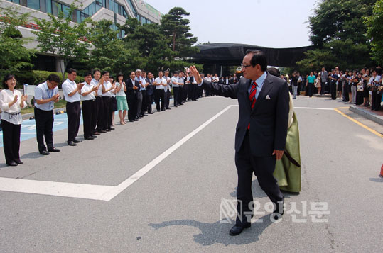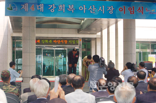 Áö³ 2002³â 7¿ù 1ÀÏ ¹Î¼±3±â ¾Æ»ê½ÃÀåÀ¸·Î ÃëÀÓÇß´ø °Èñº¹ ½ÃÀåÀÌ ±×·ÎºÎÅÍ ²À 8³â¸¸ÀÎ 2010³â 6¿ù 25ÀÏ, ¸¹Àº ½Ã¹Î°ú ³»ºóµéÀÇ ÃàÇÏ ¼Ó¿¡ ¸í¿¹·Î¿î ÀÌÀÓ½ÄÀ» °®°í ½Ã¹Îµé ¼ÓÀ¸·Î µ¹¾Æ°¬´Ù. À̳¯ ¿ÀÀü 10½ÃºÎÅÍ ¾Æ»ê½Ãû¾Õ ±¤Àå¿¡¼ ½ÃÀÛµÈ ÀÌÀÓ½ÄÀº À̸í¼ö ±¹È¸ÀÇ¿ø°ú ÀÌ»ó¸¸ Àü ±¹È¸ÀÇ¿ø, ¾È¼ºÁØ ¾Æ»ê±³À°Àå, À̱âö¡¤À̱¤¿ µµÀÇ¿ø ´ç¼±ÀÚ¿Í ±èÀÀ±Ô¡¤ÇöÀÎ¹è µî ½ÃÀÇ¿ø ´ç¼±ÀÚ¸¦ ºñ·ÔÇØ °ü³» À¯°ü ±â°ü¡¤´ÜüÀåÀ» ºñ·ÔÇÑ ½Ã¹Î, °øÁ÷ÀÚ µî 800¿©¸íÀÌ Âü¼®ÇÑ °¡¿îµ¥ °³ÃֵƴÙ. À̳¯ ÀÌÀÓ½ÄÀº ½ÄÀüÇà»ç, °ø½ÄÇà»ç, ±â³äÃÔ¿µ, ȯ¼Û µîÀÇ ¼øÀ¸·Î ÁøÇàµÆ´Ù. ½ÄÀüÇà»ç¿¡¼´Â ½Ç¹ö¾Ç´Ü, Çö¾Ç5ÁßÁÖ, ³²µµ¹Î¿ä °ø¿¬ µî°ú °æÂû¾Ç´ëÀÇ ¸¶Ä«·¹³ª ¿¬ÁÖ·Î ºÐÀ§±â¸¦ Á¶¼ºÇÑ µÚ °ø½ÄÇà»ç¿¡¼´Â ±¹¹ÎÀÇ·Ê, ¹Î¼± 3~4±â ¾Æ»ê¹ßÀü»ó ¿µ»ó¹° »ó¿µ, °¢ ±â°ü¡¤´ÜüÀåÀÇ °¨»çÆÐ ÁõÁ¤, °Èñº¹ ½ÃÀåÀÇ ÀÌÀÓ»ç, °¡Á· ¹× Á÷¿øÀÇ ²É´Ù¹ß ÁõÁ¤, ±è¿ëÇÑ ÀÎÁÖ¸éÀåÀÇ ¼Û»ç, ¼ÒÇÁ¶ó³ë ÀÌ¿ì¼ø¾¾¿Í ¾Æ»ê½Ã¸³ÇÕâ´ÜÀÇ ¼Û°¡Á¦Ã¢ ¼øÀ¸·Î ÁøÇàµÆ´Ù. °ø½Ä ÀÏÁ¤À» ¸¶Ä£ ÈÄ¿¡´Â ÁÖ¿äÂü¼®ÀÚ, °¡Á· ¹× Ä£Áöµé°ú ±â³äÃÔ¿µ ÈÄ ½Ãû Á÷¿øµéÀÌ ½Ãû ÃâÀÔ±¸±îÁö µµ¿ÇØ ¼¼ ¶°³ª´Â ° ½ÃÀåÀ» ȯ¼ÛÇϸç ÀÌÀÓ½ÄÀÇ ´ë´Ü¿øÀ» ¸¶ÃÆ´Ù. °ø±³·Ó°Ôµµ ° ½ÃÀåÀº ¿ùµåÄÅ 4° ½ÅÈ·Î ¿Â±¹¹ÎµéÀÌ µé¶° ÀÖ´ø ½Ã±â¿¡ ÃëÀÓÇÏ°í ´Ù½Ã ¿ùµåÄŠù ¿øÁ¤ 16°ÀÇ À§¾÷À» ÀÌ·é °¡¿îµ¥ ÀÌÀÓÇØ ¿ùµåÄŰú ¹¦ÇÑ ÇÔ¼ö°ü°è¸¦ ÀÌ·ç¾ú´Ù. | | | ¡ã ÀÌÀӻ縦 Çϰí ÀÖ´Â °Èñº¹ ½ÃÀå | À̳¯ °Èñº¹ ½ÃÀåÀº ÀÌÀӻ翡¼ ¡°Áö³ 8³â°£ ½ÃÁ¤¿¡ ¸¹Àº °ü½É°ú ¼º¿øÀ» ÇØÁֽŠ½Ã¹Î ¿©·¯ºÐ°ú ¿À´ÃÀÇ ¾Æ»êÀ» ¸¸µé°íÀÚ °í»ýÇÑ °øÁ÷ÀÚ ¿©·¯ºÐ²² Áø½ÉÀ¸·Î °í¸¶¿ò°ú °¨»çÇÏ´Ù¡±´Â ¸»À» ½ÃÀÛÀ¸·Î, ¹Î¼±3±â¿¡¼ ¡®°³Ã´ÀÚ Á¤½ÅÀ¸·Î ¹Ì·¡¸¦ âÁ¶ÇÏÀÚ¡¯, ¹Î¼±4±â¿¡¼ ¡®À§´ëÇÑ ¾Æ»ê À§´ëÇÑ ½Ã¹Î¡¯À̶ó´Â °¡Ä¡¾Æ·¡ ÇàÁ¤ÀÇ °üÇà°ú ƲÀ» °³ÇõÇϰí, ¾Æ»êÀÇ ¹Ì·¡¸¦ ³»´Ùº¸´Â û»çÁø ¼³°è ¹× ¾Æ»ê¹ßÀüÀ» À§ÇÑ ¼ºÀå µ¿·ÂÀ» âÃâÇϴµ¥ ¿ÂÈûÀ» ½ñ¾Æ ¿Ô´Ù°í ¿ª¼³Çß´Ù. ¶ÇÇÑ, ° ½ÃÀåÀº ¡°Áö³ 8³â°£ ¾Æ»ê½ÃÀåÀ» ¿ªÀÓÇÏ¸é¼ Èñ¸ÁÀ» ÁÖ´Â ½ÃÀå Áö¹æÀÚÄ¡ÀÇ ¸ðµ¨ÀÌ µÇ´Â ½ÃÀåÀÌ µÇ°Ú´Ù´Â °¢¿À·Î ÀÏ¿¡¸¸ ÁýÁßÇØ¿ÔÀ¸¸ç Àú¿¡ ´ëÇÑ Æò°¡´Â ½Ã¹Î ¿©·¯ºÐ°ú ¿ª»ç¿¡ ¸Ã±â°Ú´Ù¡±°í ¸»Çß´Ù. ° ½ÃÀåÀº ÀÌ¾î ¡°¾ÕÀ¸·Î ¾Æ»êÀÇ »õ·Î¿î µµ¾à°ú ¹ßÀüÀ» À§ÇØ º¹±â¿Õ ½ÃÀå´ç¼±ÀÚ¿Í ½Ã¹Î ¿©·¯ºÐ, °øÁ÷ÀÚ ¿©·¯ºÐµéÀÇ ´õ¿í´õ ¸¹Àº °ü½É°ú ³ë·ÂÀ» ±â¿ï¿©ÁÖ±æ ´çºÎµå¸°´Ù¡±¸ç ¡°ÀÌ ÀÚ¸®¸¦ ¶°³ ÈÄ¿¡µµ ¼ÒÁßÇÑ °¡Á·, ½Ã¹Î ¿©·¯ºÐ°ú Ä£¼÷ÇÑ ÀÌ¿ôÀ¸·Î °ç¿¡ ³²°Ú´Ù¡±¸ç ÀÌÀӻ縦 ¸¶ÃÆ´Ù. ÇÑÆí Á÷¿ø´ëÇ¥·Î ¼Û»ç¸¦ ³¶µ¶ÇÑ ±è¿ëÇÑ »ç¹«°ü(ÀÎÁÖ¸éÀå)Àº ¡°Áö³ 8³âÀ̶ó´Â ±×¸® ªÁö ¾ÊÀº ±â°£À» µÇµ¹¾Æ º¸¸é ÀÏ ¿å½É ¸¹Àº ½ÃÀå´Ô ¹Ø¿¡¼ Èûµç °æ¿ìµµ ¸¹¾ÒÁö¸¸ ¾Æ»êÀÇ ¹ø¿µµÈ ¹Ì·¡¸¦ ¼³°èÇÏ°í ¶Ç ±¸Ã¼È ½ÃÄÑ ³ª°¡´Â °úÁ¤¿¡¼ ÂüÀ¸·Î ¸¹Àº ÀÏÀ» Çß´ø ±â¾ïÀÌ ÀÌÁ¦ °¡½¿ »ÑµíÇÑ º¸¶÷À¸·Î ´Ù°¡¿Â´Ù¡±°í ¸»Çß´Ù. ±è »ç¹«°üÀº ¶ÇÇÑ ÃÖ¾ÇÀÇ ¿©°Ç ¼Ó¿¡¼ Èûµé°Ô °áÁ¤Çϰí ÀÌ·ç¾î³½ ¿Â¾ç¿Âõ¿ª¾Õ ±¤ÀåÀ» ¿¹·Î µé¸é¼ ¡°¿ª¾Õ ±¤ÀåÀÌ ¾Æ»ê½ÃÀÇ »ó¡ÀûÀÎ °ø°£ÀÌ µÈ Áö±ÝÀº ´©±¸µµ ½ÃÀå´ÔÀÇ Èûµé°í °íµ¶Çß´ø °áÁ¤ÀÌ À߸øµÆ´Ù°í ¸»ÇÏÁö ¾Ê´Â´Ù. ½Ã¹Î ¸ðµÎ°¡ ±× ±¤Àå¿¡¼ Áñ°Ì°Ô ³ë´Ò°í ¿ì¸®ÀÇ ¹Ì·¡¸¦ ³íÇÏ´Â, Àü±¹ ¾î´À°÷¿¡¼µµ º¼ ¼ö ¾ø´Â ÈǸ¢ÇÑ ½Ã¹Î±¤ÀåÀÌ µÇ¾ú´Ù¡±°í ¸»Çß´Ù. ±è »ç¹«°üÀº ³¡À¸·Î ¡°ÇÔ²² Çß´ø Áö³³¯µéÀÌ ÇູÇß°í, ¸¶³É ±×¸³°í ¾ðÁ¦³ª º¸°í½ÍÀ» °Í °°´Ù¡±¸é¼ ¡°¾îµð¿¡ °è½Ãµç, ¹«¾ùÀ» ÇϽõç, ´ç½ÅÀº ´Ã ÀÚ¶û½º·± ¿ì¸®ÀÇ ½ÃÀå´ÔÀ¸·Î, ¿ì¸®µé °¡½¿ ¼Ó¿¡ ¿µ¿øÈ÷ ³²°Ô µÉ °Í¡±À̶ó°í ¸»Çß´Ù.