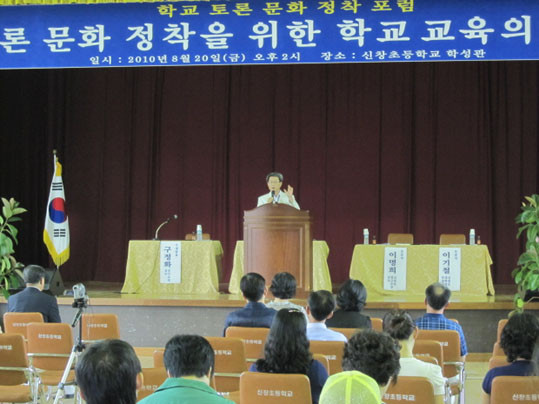 ¡®Åä·Ð ¹®È Á¤ÂøÀ» À§ÇÑ Çб³ ±³À°ÀÇ ¹æÇ⡯À̶ó´Â ÁÖÁ¦·Î ¿¸° ÀÌ ³¯ Æ÷·³Àº ÃʵîÇб³¿¡¼´Â ½±°Ô º¼ ¼ö ¾ø¾ú´ø Çà»ç¶ó´Â Á¡¿¡¼ ´õ¿í ÁÖ¸ñÀ» ¹Þ¾Ò´Ù.