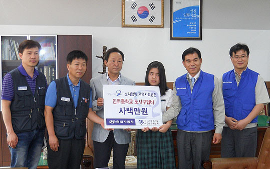 | | ¨Ï ¿Â¾ç½Å¹® | | Çö´ëÀÚµ¿Â÷ ³ëÁ¶(ÀÇÀå Àü½ÂÀÏ)¿Í ȸ»ç(ÀÌ»ç ¾çµ¿±æ)¿¡¼´Â Áö³ 8¿ù 30ÀÏ ÀÎÁÖÁßÇб³(±³Àå ±è¿ëȯ)¿¡ µµ¼±¸ÀÔºñ·Î 400¸¸¿øÀ» Àü´ÞÇß´Ù.