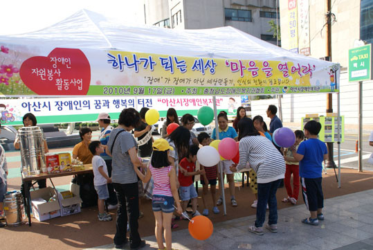 À̳¯ Çà»ç´Â ¾Æ»ê½ÃÀå¾ÖÀκ¹Áö°üÀ» ÀÌ¿ëÇϰí ÀÖ´Â Àå¾ÖÀÎ 20¿©¸íÀÌ Á÷Á¢ ÀÚ¿øºÀ»çÀÚ·Î Âü¿©ÇÑ Ä·ÆäÀÎÀ¸·Î Àå¾ÖÀεéÀÌ Á÷Á¢¸¸µç ¸®º»°ø¿¹, ÇÚµåÆù°í¸®, ¼öÁ¦ºñ´© µîÀÇ ´Ù¾çÇÑ ÀÛǰÀ» Àü½ÃÇß´Ù.