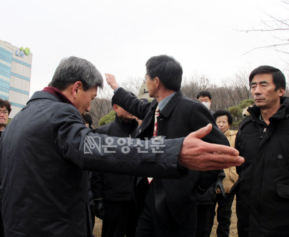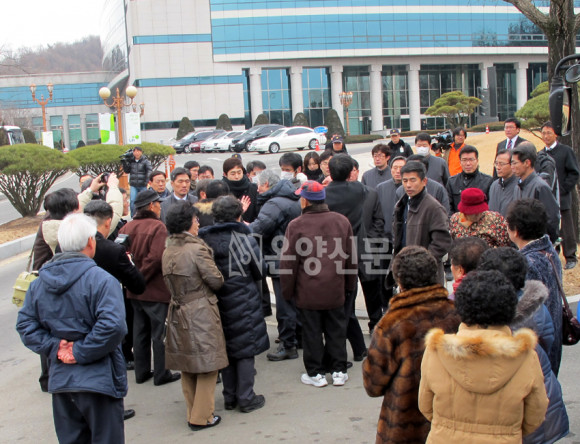 º¹±â¿Õ ½ÃÀå°ú ½ÃûÁ÷¿ø ¹× ÀϺΠÁֹΠ´ëÇ¥µé¸¸ÀÌ LH°ø»ç º»»ç °Ç¹°¿¡ µé¾î°¡ ¹Ú°ü¹Î ³ì»öµµ½Ãº»ºÎÀ̻縦 Á¢°ßÇØ °ÇÀÇ»çÇ×À» Àü´ÞÇÏ´Â µ¿¾È ³ª¸ÓÁö ÁֹεéÀº º»»ç °Ç¹°¿¡ µé¾î¼´Â °ÍÁ¶Â÷ Á¦Áö´çÇß´Ù. ÀÌ¿¡ ÁֹεéÀº ¡°¹Î¿øÀÎÀ¸·Î ¿Â °ÍÀÌ´Ù. ¹Î¿øÀÎÀ» ´ë¹® ¹Û¿¡ ´ë±âÇÏ°Ô ÇÏ´Â °ÍÀÌ ¿¹ÀÇÀ̳ġ±¸ç Ç×ÀÇÇß´Ù.