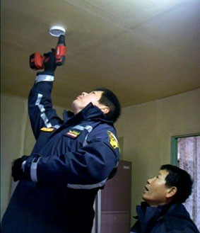 ¼±ÀåÀÇ¿ë¼Ò¹æ´ë¿ø 43¸íÀº ¡®ÈÀç¾ø´Â ¼±À常µé±â¡¯ »ç¾÷ÀÇ ÀÏȯÀ¸·Î ¼Ò¿Ü°èÃþ¿¡ ¾ÈÀü±³À° ¹× ÁÖº¯È¯°æÀ» Á¤ºñÇϰí ÈÀç¹ß»ý½Ã ½Å¼ÓÇÏ°Ô ¾Ë·ÁÁÜÀ¸·Î½á ÀθíÇÇÇØ¸¦ ÃÖ¼ÒÈ ÇÒ ¼ö ÀÖ´Â ´Üµ¶Çüº¸Çü°¨Áö±â¸¦ ´ë¿øµéÀÇ ¼º±ÝÀ» ¸ð¾Æ ¼³Ä¡Çß´Ù.