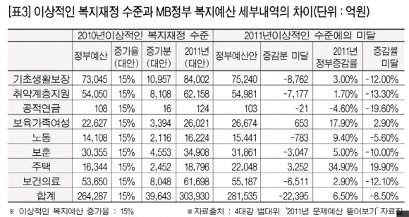 °æÁ¦¼ºÀå·üÀÌ 5%°í ¹°°¡»ó½Â·üÀÌ 4.7%¿¡ À̸¥´Ù. µû¶ó¼ ¼¹Îº¹Áö¿¹»êÀº 9% Áõ°¡ÇØ¾ß Çϴµ¥µµ 6.2%¸¸ Áõ¾×µÇ¾ú´Ù. ¶Ç Á¤ºÎ´Â Àü³â´ëºñ 600¾ï¿øÀÇ º¹Áö¿¹»êÀÌ ´Ã¾î³µ´Ù°í ¹ßÇ¥Çß´Ù. <Ç¥2, 3ÂüÁ¶>