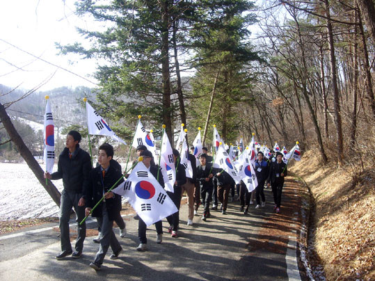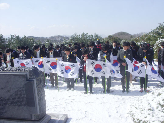 À̹ø Ä·ÇÁ¿¡ Âü°¡ÇÑ Ãæ³²µµ³» 26°³±³ 81¸íÀÇ ÇлýµéÀº »çÀü±³À°À¸·Î űرâ, ¹«±ÃÈ, ¾Ö±¹°¡, ³ª¶óµµÀå, ³ª¶ó¹®Àå µî ±¹°¡»ó¡¿¡ ´ëÇÑ ±³À°À» ÅëÇØ ±¹°¡Á¤Ã¼¼ºÀ» ³»¸éÈÇÑ ÈÄ, °¢ÀÚ ¼Õ¿¡ Á÷Á¢ űر⸦ µé°í ÇöÃæ»ç¿¡¼ºÎÅÍ 8km°¡ ³Ñ´Â ±æÀ» 2½Ã°£ °¡·® °É¾î¼ À±º¸¼± ´ëÅë·ÉÀÇ ¹¦¿ª°ú ÀÌÃæ¹«°øÀÇ ¹¦¿ªÀ» Âü¹èÇϰí ÁÖº¯ Á¤ÈȰµ¿À» ½Ç½ÃÇß´Ù.