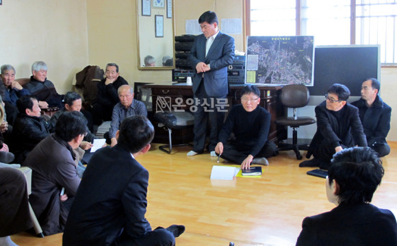 ¿ÀÇöÀç ´ëÃ¥À§¿øÀåÀº ¡°¿ì¼± Áֹεé°ú ÁýÇàºÎ¿ÍÀÇ ÀÇ»ç¼ÒÅëÀÌ ÀüÇô ¾È µÈ Á¡ÀÌ Á¦ÀÏ Å« ¹®Á¦´Ù. ÇÕÀÇÁ¡À» ã±â À§ÇØ ¼¼ºÎÀûÀ¸·Î Ç®¾î³ª°¡¾ß ÇÑ´Ù¡±°í ÁöÀûÇϸç, ¡°±¹°¡¿¡¼ ÇÏ´Â »ç¾÷À» °³ÀÎÀÌ ¹Ý´ëÇÏ¸é ¾È µÇ´Â °ÍÀ̸ç, °æÂû´ëÇÐÀÌ ¾Æ»ê¿¡ ¿À¸é ÁÁÀº °Íµµ ¾Ë°í ÀÖ´Ù. ÇÏÁö¸¸ À̰÷¿¡ ¶¥À̳ª °Ç¹° ¾ø´Â ¿µ¼¼ÇÑ »ç¶÷µéÀº »ì±æÀÌ ¸·¸·ÇÏ´Ù¡±¸ç ÀÌÀüºñ¿ë ¸¸À¸·Î ±×µéÀÌ ¿ÜÁö·Î ³ª°¡ ´Ù½Ã Å͸¦ Àâ°í »ì±â¶õ ¸Å¿ì Èûµé´Ù´Â Àý¹ÚÇÑ »óȲÀ» °Á¶Çß´Ù.