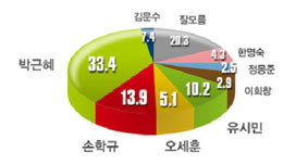 Â÷±â ´ë±Ç, ¹Ú±ÙÇý 33.4%-¼ÕÇÐ±Ô 13.9%