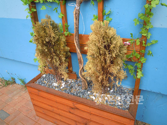 ÀÌ ½Ã±¸°¡ ±âÀÚ¿¡°Ô Àǹ̽ÉÀåÇÏ°Ô ´Ù°¡¿ÈÀº ¿ª»ç µÞÆí º®¸é¿¡ ½É¾î³õÀº Á¶°æ¸ñ(Ç⳪¹«) ¶§¹®ÀÌ´Ù. º¸±â ÁÁÀ¸¶ó°í ÇÁ¶ó½ºÆ½ ³ªÆÈ²É µî°ú ÇÔ²² º®¸é¿¡ ½É¾î³õÀº °ÍÀº ÁÁÀºµ¥ ±×Áß ¸ð¼¸® ¾ÈÂÊ¿¡ ½É¾î³õÀº ³ª¹«´Â ÀÀ´Þ°ú ¹°ºÎÁ· ¶§¹®ÀÎÁö Áö³ °Ü¿ïÀ» ³ª¸é¼ ±×¸¸ °í»ç(ͽÞÝ)Ç߰ųª ÇöÀç °í»çÁßÀÌ´Ù.