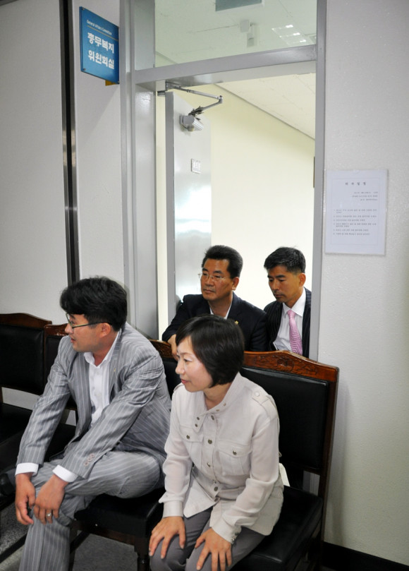 | | ¡è¡è ¹ÎÁÖ´çÀÇ¿øµéÀÌ Ãѹ«º¹ÁöÀ§¿øÈ¸ »ç¹«½Ç ¾Õ¿¡ ¾É¾Æ¼ ȸÀÇÁøÇàÀ» ¸·°í ÀÖ´Ù. | ¨Ï ¿Â¾ç½Å¹® | |