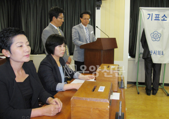 ÇÏÁö¸¸, ÀçÀûÀÇ¿ø 14¸í Áß Âù¼º 7Ç¥, ¹Ý´ë 6Ç¥, ±â±Ç 1Ç¥·Î Âù¼º¿¡ ´ëÇÑ °ú¹Ý¼ö(8¸í)¸¦ ³ÑÁö ¸øÇØ °á±¹ Àü³²¼ö ÀÇ¿øÀÇ ¡®¾Æ»ê½Ã ÁÖ¹ÎÂü¿©¿¹»êÁ¦ ¿î¿µ Á¶·Ê¾È¡¯ÀÌ ºÎ°áµÇ´Â, ±â±Ç ÇÑ Ç¥·Î ÀÎÇÑ ¿¹»ó ¹ÛÀÇ °á°ú°¡ ³ª¿ÀÀÚ ¹ÎÁÖ´ç ÀÇ¿øµéÀº ÇÑ ½Ã¸§ ³õ´Â ºÐÀ§±â¿´°í, À̿ʹ ¹Ý´ë·Î ºñ¹ÎÁÖ´ç ÀÇ¿øµéÀÇ Ç¥Á¤Àº ±×¸® ¹àÁö ¸øÇß´Ù.