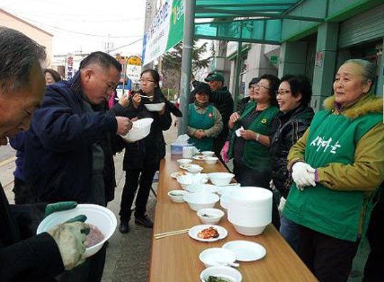 °¡Àå Ãß¿î µ¿Áþ³¯ °¡Àå µû¶æÇÑ ½Ã°£À» ¸¶·ÃÇϰڴٴ ÃëÁö·Î ±âȹµÈ Çà»ç¿¡¼´Â ºÎ³àȸ¿øµéÀÇ ºÀ»ç¿Í ¼Û¾Ç³óÇùÀÇ ÈÄ¿øÀ¸·Î Áö¿ªÀÇ ¾î¸£½Åµé ¹× °ü³» Áֹε鿡°Ô Á¡½É½Ä»ç·Î ÆÏÁ×À» ³ª´©¾ú´Ù.