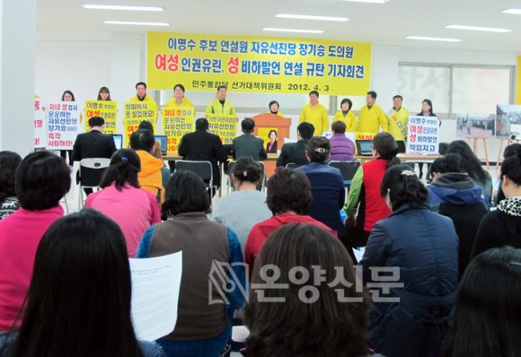 À̳¯ ±âÀÚȸ°ß¿¡¼ ±è¼±È Èĺ¸ÃøÀº À̸í¼ö È常¦ °Ü³ÉÇØ ¡°À̸í¼ö È帴 û¸ñȸ ÀÔ¹ý·Îºñ ÀçÆÇ¿¡¼ ¸éÁ˺θ¦ ¹Þ°íÀÚ Á¤Ä¡Àڱݹý °³Á¤¾ÈÀ» ´ëÇ¥¹ßÀÇ ÇØ ±¹¹ÎÀû ÁöźÀ» ¹Þ´Â ±¸Å Á¤Ä¡¸¦ º¸¿©ÁáÀ¸¸ç, ±¹È¸ÀÇ¿øÀÇ ±Ç·ÂÀ» ³²¿ëÇØ »ó´ëÈĺ¸ÀÎ ±è¼±È Èĺ¸ÀÇ µÞÁ¶»ç¸¦ ÀÚÇàÇÏ´Â ±¸Å Á¤Ä¡¸¦ º¸¿©Áá´Ù. ±Þ±â¾ß ¼±°Å¿îµ¿ ÃʹݺÎÅÍ ÀÚÀ¯¼±Áø´çÀÇ µµÀÇ¿øÀ» ÅëÇØ ÀνŰø°Ý¼º ¹ß¾ðÀ¸·Î »ó´ëÈĺ¸ ÈìÁý³»±âµµ ¸ðÀÚ¶ó ¼ºÃßÇà, ¿©¼ººñÇÏ ¹ß¾ðÀÌ ½ñ¾ÆÁö´Â ±¸Å Á¤Ä¡¸¦ Çϰí ÀÖ´Ù.¡±¸ç ±×µ¿¾È À̸í¼ö Èĺ¸ ÃøÀÇ ÇàÅ¿¡ ´ëÇØ ¸Íºñ³À» ÆÛºÎ¾ú´Ù.