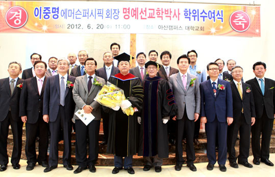 È£¼´ë´Â ÀÌÁ߸í ȸÀåÀÌ ´ëÇØ ¡®È¸»çÀÇ ÀÌÀ±À» »çȸºÀ»ç¿Í ¼±±³È°µ¿¿¡ »ç¿ëÇÏ´Â ÈǸ¢ÇÑ ±Í°¨ÀÌ µÇ´Â ºÐ¡¯À̶ó¸ç, ¡°ÀÌÁ߸í ȸÀåÀÌ º¸¿©ÁØ ´Ù¹æ¸éÀÇ °øÀûÀº »ç¶û°ú ³ª´®À» ½ÇõÇÏ´Â ±â¾÷°¡ÀÇ Á¤½ÅÀ» ±¸ÇöÇÑ °ÍÀ̸ç ÀÌ´Â »ç¶ûÀÇ ±âµ¶±³ Á¤½Å°ú µµÀüÀÇ º¥Ã³Á¤½ÅÀ» À̳äÀ¸·Î Çϴ ȣ¼´ëÇб³ÀÇ °ÇÇÐÀ̳ä°ú ±³À°¸ñÇ¥¿¡ Å©°Ô ºÎÇÕÇϱ⿡ ¼±±³ÇÐ ¹Ú»çÇÐÀ§¸¦ ¼ö¿©ÇÑ´Ù¡±¶ó°í ¹àÇû´Ù.