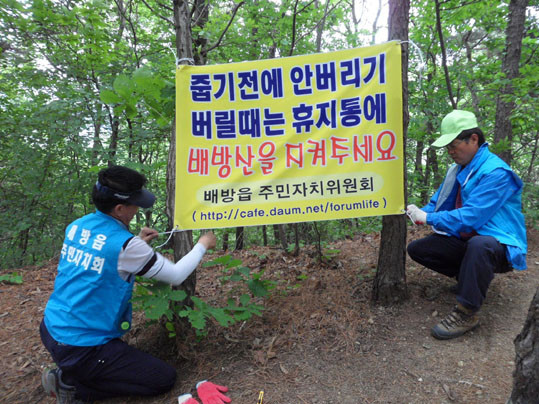 ÁÖ¹ÎÀÚÄ¡À§¿øµéÀº µî»ê·Î¿¡ ¹ö·ÁÁø ÈÞÁö¿Í °¢Á¾ ¿À¹° µîÀ» ¼ö°ÅÇØ µî»ê°´µéÀÌ ±ú²ýÇÑ »ê±æÀ» Áñ±æ ¼ö ÀÖµµ·Ï ȯ°æÁ¤È¿Í ¿À°í°¡´Â µî»ê°´µéÀ» ´ë»óÀ¸·Î ÀÚ¿¬º¸È£ °è¸ù¿îµ¿À» Àû±Ø ÆîÃÆÀ¸¸ç ¹è¹æ»êÀÇ Çª¸£¸¥ ½Ç·Ï°ú ¾Æ¸§´Ù¿òÀ» À§ÇØ Áö¼ÓÀûÀÎ °ü½ÉÀ» ½ñ±â·Î ´ÙÁüÇß´Ù.