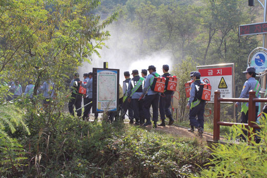 ÇÑÆí ±èºÀ½Ä ¾Æ»ê¼Ò¹æ¼Àå°ú ±è¼¼È¯ ¾Æ»ê½Ã ÀÇ¿ë¼Ò¹æ´ë¿¬ÇÕȸÀåÀº ¡°»êºÒ¹ß»ýÀ» ¿¹¹æÇÏ¿© ¾Æ¸§´Ù¿ò ÀÚ¿¬À» ÁöÄѳª°¡¾ß ÇÑ´Ù.¡±¸ç ¡°¿¹°íÄ¡ ¸øÇÑ ÈÀç¿¡ ´ëºñÇÏ¿© Áö¼ÓÀûÀº ÈÆ·ÃÀ» ÇØ³ª°¥ °ÍÀÌ´Ù.¡±°í ¸»Çß´Ù.