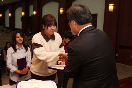 ¹Ì³ª¹Ì »çÀ¯Å°(21, ÅëÀϽÅÇаú, 2³â)¾¾´Â ¡°±³¼ö´Ô²²¼ Áֽô ÀåÇбÝÀ̶ó ¾î¶² ÀåÇбݺ¸´Ù Àǹ̰¡ ÀÖ°í °¨»çÇÏ´Ù.¡±¶ó¸ç, ¡°À̸¦ °è±â·Î ´õ¿í ´õ Çо÷¿¡ Àü³äÇϰڴ١±¶ó°í ¼Ò°¨À» ¹àÇû´Ù.
