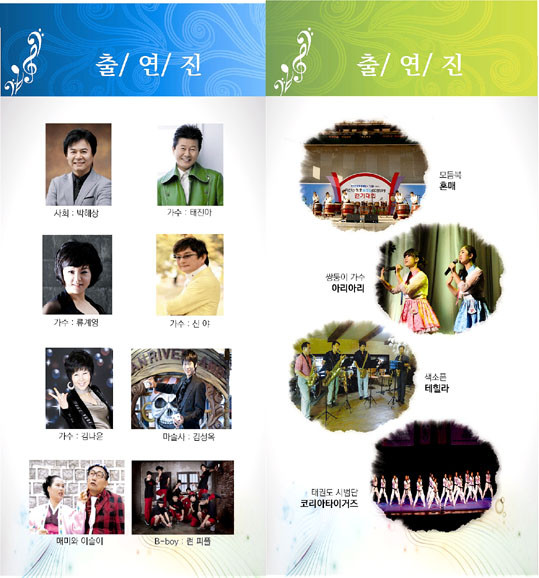 À̳¯ Çà»ç¿¡´Â 1ºÎ¡¤2ºÎ·Î ³ª´µ¾î, 1ºÎ °ø¿¬À¸·Î ¸ðµëºÏ °ø¿¬, À½¾Ç°¡Á·(½ÖµÕÀÌÀÚ¸Å) ³ë·¡, »ö¼ÒÆù¾Ó»óºí ¿¬ÁÖ, űǵµ½Ã¹ü´Ü °ø¿¬°ú 2ºÎ´Â ÃÊû°ø¿¬À¸·Î ÃÊ´ë°¡¼ö ÅÂÁø¾Æ¡¤·ù°è¾ç ¹× ¸ÅÁ÷¼î, ºñº¸ÀÌ, ÀüÅëÄÚ¹Ìµð °ø¿¬µî ´Ù¾çÇÑ À帣ÀÇ °ø¿¬À¸·Î ¾Æ»ê½Ã¹ÎÀÇ ¿À°¨À» ¸¸Á·½Ãų ¿¹Á¤ÀÌ´Ù.