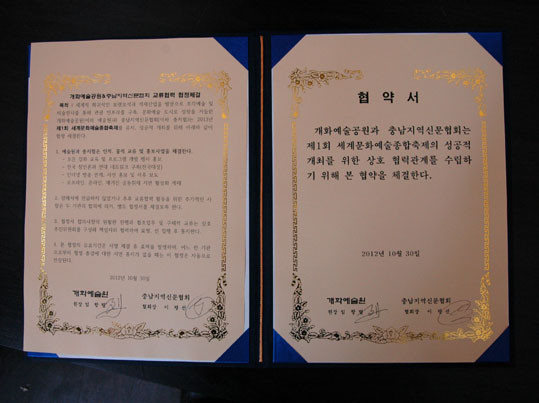 ÀÌ¿¡ °³È¿¹¼ú°ø¿ø ÀÓÇ×·Ä ´ëÇ¥´Â ¡°Ãæ³²¾ð·ÐÀ» À̲ø¾î °¡´Â ÃæÁöÇù°ú Á¦1Â÷ ¼¼°èÁ¾ÇÕ¹®È¿¹¼úÁ¦ È«º¸¸¦ À§ÇÑ MOUü°áÀ» °¨»çÇÏ°Ô »ý°¢ÇÑ´Ù¡±¶ó¸ç ¡°°³È¿¹¼ú°ø¿øÀº 5¸¸5õÆò ±Ô¸ðÀÇ ´ë´ÜÀ§ ¿¹¼úÁ¾ÇÕ´ÜÁö·Î À̰÷À» ´õ¿ï ¾Ë¸± ¼ö ÀÖ´Â ÃæÁöÇù°úÀÇ À̹ø Çù¾àü°áÀÌ Å« ÈûÀÌ µÉ °Í °°´Ù.¡±°í ¸»Çß´Ù.