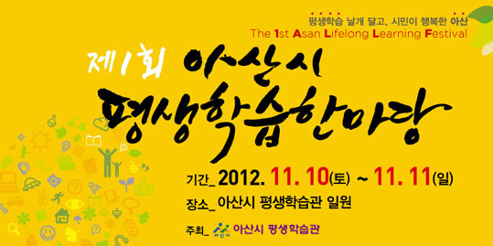 Á¦1ȸ ¾Æ»ê½Ã Æò»ýÇнÀÇѸ¶´ç Çà»ç°¡ ¿À´Â 11¿ù 10ÀÏ~11ÀϱîÁö ÀÌÆ² µ¿¾È ¾Æ»ê½Ã Æò»ýÇнÀ°ü(°üÀå À±Àç¿ø)¿¡¼ °³ÃֵȴÙ.
