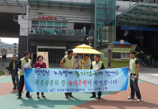 ¾Æ»êÁö»ç Á÷¿øµéÀº ¿Â¾ç¿Âõ¿ª°ú Àç·¡½ÃÀåÀ» ¹æ¹®ÇØ ³óÁö¿¬±Ý»ç¾÷, ³óÁöÀÓ´ë¼öŹ»ç¾÷, °æ¿µÀ̾çÁ÷ºÒ»ç¾÷ µîÀÌ ¼Ò°³ µÈ ³óÁöÀºÇà»ç¾÷ ¸®ÇÁ·¿°ú ¼Õ°¡¹æÀ» ³ª´©¾î ÁÖ¸ç È«º¸¸¦ ½Ç½ÃÇßÀ¸¸ç °ü½ÉÀ» º¸ÀÌ´Â ³ó¾÷Àο¡°Ô ÀÚ¼¼ÇÑ »ç¾÷¼³¸íÀ» ÇØ ÁÖ¾ú´Ù.