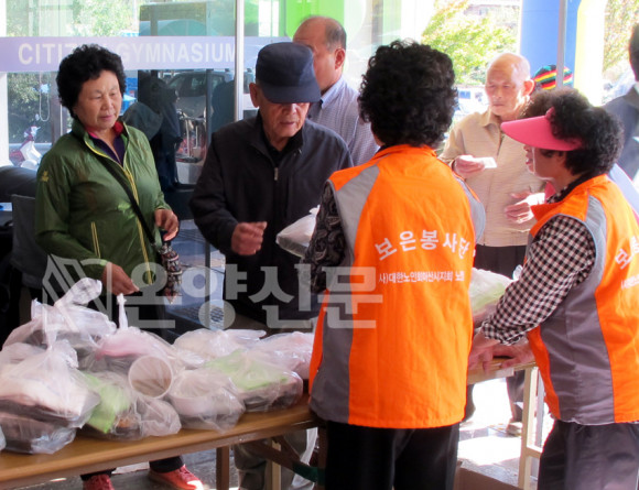»çȸÀûÀ¸·Î ³ëÀε鿡 ´ëÇÑ °ü½É°ú °æ·ÎÀǽÄÀ» °í¾çÇÏÀÚ´Â ÃëÁö´Â ¹«»öÇÏ°Ô À̳¯ ³ëÀεéÀº ¹ÞÀº µµ½Ã¶ôÀ» Çà»çÀå ¾È¿¡¼´Â ¸ÔÀ» ¼ö ¾ø¾î, Çà»çÀå ¹Û µµ·Î°¡³ª ¹ö½ºÁ¤·ùÀå¿¡ ¿õÅ©¸®°í ¾É¾Æ µµ½Ã¶ôÀ» ¸Ô´Â dz°æµéÀÌ °÷°÷¿¡¼ ¿¬Ã⠵ƴÙ.