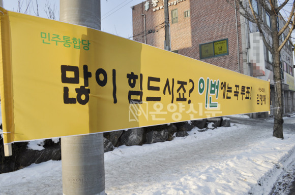 ÅõÇ¥ µ¶·Á Çö¼ö¸·ÀÌ Á¦ÀÏ ¸ÕÀú ´«¿¡ ¶è °ÍÀº À̰ǿµ »õ´©¸®´ç ¾Æ»ê ´çÇù À§¿øÀåÀÌ ¿ªÀü°ú ÁÖ¿ä Áö¿ª¿¡ ¡®´ç½ÅÀÇ ÇÑÇ¥°¡ ´ëÅëÇÕÀ» ¸¸µì´Ï´Ù¡¯¶ó´Â ³»¿ëÀ¸·Î °Ô÷ÇßÀ¸¸ç ¹ÎÁÖ´çÀÇ ±è¿µ¾Ö, ¾ÈÀåÇå ½ÃÀÇ¿øÀº ¡®¸¹ÀÌ Èûµå½ÃÁÒ, À̹ø¿¡´Â ²À ÅõÇ¥ Çսô١¯¶ó´Â ³»¿ëÀ¸·Î ÅõÇ¥¸¦ µ¶·ÁÇϰí ÀÖ´Ù.