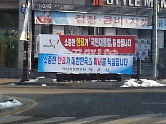 À̸í¼ö ±¹È¸ÀÇ¿øµµ ¡®¼ÒÁßÇÑ ÇÑÇ¥°¡ ±¹¹Î ´ëÅëÇÕÀ» ¸¸µì´Ï´Ù¡¯¶ó´Â ³»¿ëÀ» ´ã¾Æ Çö¼ö¸·À» °É¾úÀ¸¸ç À̱³½Ä ¾Æ»ê½ÃÁ¤ ¹ßÀü ¿¬±¸¿øÀåµµ ¡®¼ÒÁßÇÑ ÇÑÇ¥°¡ ´ëÇѹα¹ÀÇ ¹Ì·¡¸¦ Ã¥ÀÓÁø´Ù¡¯´Â ³»¿ëÀ¸·Î ½Ã³»±Ç°ú ¹è¹æ µîÁö¿¡ Çö¼ö¸·À» °É¾ú´Ù.