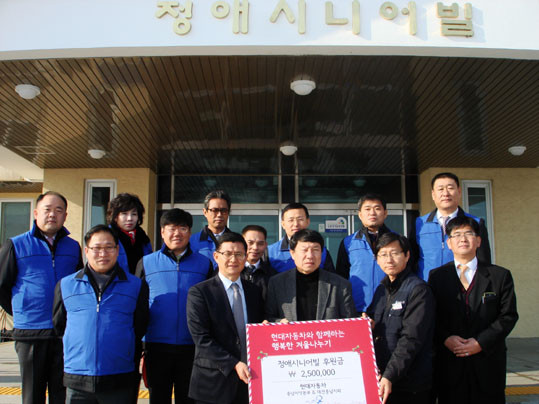 Çö´ëÀÚµ¿Â÷ Ãæ³²Áö¿ªº»ºÎ´Â ³ëÀκ¹Áö½Ã¼³ Á¤¾Ö½Ã´Ï¾îºô¿¡ ÈÄ¿ø±ÝÀ» Àü´ÞÇÏ°í ¾î¸£½Å ¸»¹þ µµ¿ì¹Ì, ½Ä»çº¸Á¶, ȯ°æÁ¤¸® ¹× Á¦¼³ÀÛ¾÷ µî ±×µ¿¾ÈÀÇ ÇÑÆÄ¸¦ ³ìÀÌ´Â µû¶æÇÑ »ç¶ûÀÇ ¼Õ±æÀ» ³ª´©¾ú´Ù.