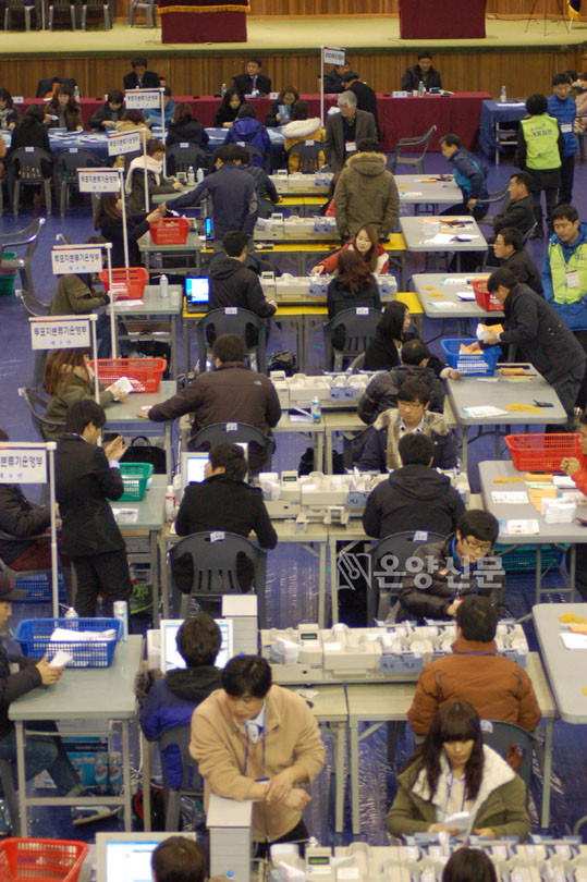 | | ¡è¡è ¡ãÅõÇ¥Áö ºÐ·ù±â¸¦ °³Ç¥°ü¸® ¿ä¿øµéÀÌ ÁÖ½ÃÇϰí ÀÖ´Ù. | ¨Ï ¿Â¾ç½Å¹® | |