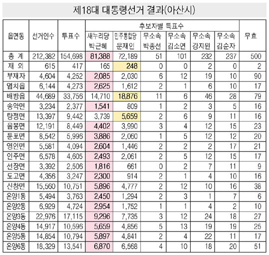 À̹ø ´ë¼±¿¡¼ ¾Æ»ê½ÃÀÇ À¾¡¤¸é¡¤µ¿º° °³Ç¥°á°ú(Àç¿ÜÅõÇ¥ Á¦¿Ü)¸¦ º¸¸é »õ´©¸®´çÀÇ ¹Ú±ÙÇýÈ帰¡ ¹è¹æÀ¾°ú ÅÁÁ¤¸éÀ» Á¦¿ÜÇϰí 16°³ Áö¿ª¿¡¼ ¸ðµÎ ¿ì¼¼¸¦ º¸À̰í ÀÖ´Â °ÍÀ¸·Î ³ªÅ¸³µ´Ù.