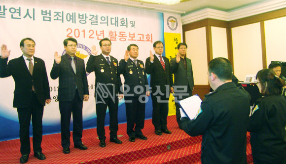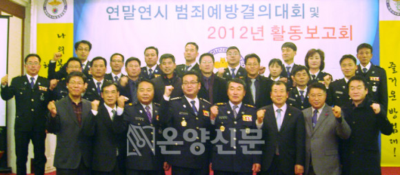 ¾Æ»ê½ÃÀÚÀ²¹æ¹ü¿¬ÇÕ´ë(´ëÀå ±èű¹) ¿¬¸»¿¬½Ã ¹üÁË¿¹¹æ °áÀÇ´ëȸ ¹× 2012³â Ȱµ¿º¸°íȸ¿¡¼ Âü¼®ÇÑ ½ÃÀå, ±¹È¸ÀÇ¿ø, ÀÇÀåÀ¸·ÎºÎÅÍ ÇÑÇØ ºÀ»çȰµ¿¿¡ ´ëÇÑ º¸´ä(?)À¸·Î ¡®³Êµµ ³ªµµ¡¯ ¡®»ç¶û¡¯À» Ç¥ÇöÇß´Ù.