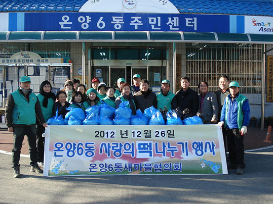 | | ¨Ï ¿Â¾ç½Å¹® | | ¿Â¾ç6µ¿ »õ¸¶À»ÇùÀÇȸ(ȸÀå ¹Úö¿ì, ºÎ³àȸÀå ±â¸íÈñ)´Â Áö³ 12¿ù 27ÀÏ ¿Â¾ç6µ¿ Áֹμ¾ÅÍ¿¡¼ ¿¬¸»¿¬½Ã ¡®»ç¶ûÀÇ Èò¶± ³ª´©±â¡¯ Çà»ç¸¦ °³ÃÖÇß´Ù.