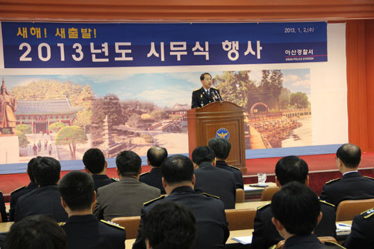 ÀÌÀç½Â ¼ÀåÀº ½Ã¹«½Ä¿¡¼ ¡°°æ»çÀ̽ÅÀÇ ¸¶À½°¡ÁüÀ¸·Î ¾÷¹«¿¡ Á¤¼ºÀ» ´ÙÇÏ°í ±¹¹Î¿¡°Ô ½Å·Ú¸¦ ¾ò´Â °æÂûÀÌ µÇ¾î¾ß Çϸç, 2013³â¿¡µµ ±¹¹Î»ýȰÀÇ ¾ÈÀüÀ» È®º¸¿¡ ºóÆ´ÀÌ ¾ø¾î¾ß Çϰí, ¼ºÆø·Â¡¤Çб³Æø·Â¡¤°¡Á¤ÆÄ±«¹ü¡¤ºÒ·®½Äǰ µî ¹Î»ýÀ» ºÒ¾ÈÄÉ ÇÏ´Â »çȸ¾Ç ô°á¿¡ ¾ÕÀ弸ç, ¼¹Î°ú ¼Ò¿ÜµÈ ¾àÀÚ¿¡°Ô ¿Â±â°¡ °ñ°í·ç ÆÛÁö´Â µû¶æÇÑ °¡½¿À» °¡Áø °æÂû·Î Ä¡¾ÈȰµ¿À» ÆîÃijª°¥ °Í¡±À» ´çºÎÇß´Ù.