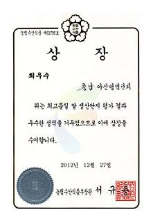 2012³â Àü±¹ ´ÜÁöÆò°¡ ÃÖ¿ì¼ö»ó ¼ö»ó