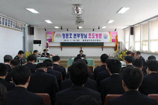 À̹ø ¹æ¹®¿¡¼ Á¤¹®È£ Ãæ³²¼Ò¹æ¾ÈÀüº»ºÎÀåÀº ¾Æ»ê¼Ò¹æ¼ 2013³â ÁÖ¿ä¾÷¹«ÃßÁø°èȹ ¹× ´ç¸é ¾÷¹«¸¦ º¸°í¹Þ¾Ò°í, Àϼ±¿¡¼ ÈÀ硤±¸Á¶¡¤±¸±Þ Ȱµ¿¿¡ ¸ÅÁøÇϰí ÀÖ´Â Á÷¿øµéÀÇ °ÇÀÇ»çÇ× ¹× ¾Ö·Î»çÇ×À» ûÃëÇÏ´Â µî ¾ÕÀ¸·ÎÀÇ ¼Ò¹æÁ¶Á÷ ¹ßÀü¹æÇâ¿¡ ´ëÇØ À̾߱âÇÏ´Â ½Ã°£À» °¡Á³´Ù.