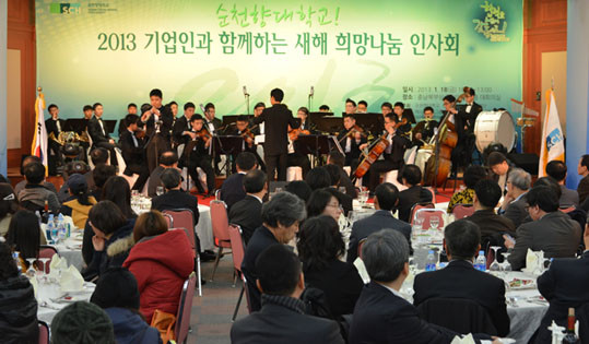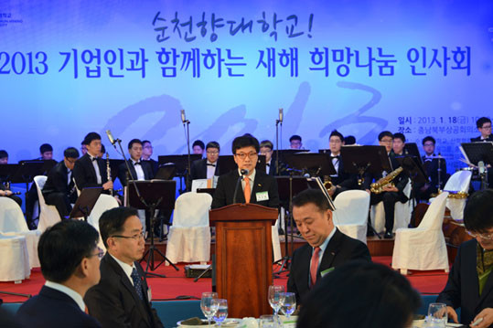 | | ¡è¡è ¡ãÁö³ 18ÀÏ Ãæ³²ºÏºÎ»ó°øÈ¸ÀǼҿ¡¼ ¿¸° ¡®2013 ±â¾÷Àΰú ÇÔ²²ÇÏ´Â »õÇØ Èñ¸Á³ª´® Àλçȸ¡¯¿¡¼ ¼±³ÀÏ ¼øÃµÇâ´ë ÀÌ»çÀå(°¡¿îµ¥)°ú Çà»ç¿¡ Âü¼®ÇÑ ÁÖ¿ä ÀλçµéÀÌ »êÇаü »ó»ýÀ» ´ÙÁüÇÏ¸é¼ °Ç¹è¸¦ Çϰí ÀÖ´Ù. | ¨Ï ¿Â¾ç½Å¹® | | ¼±³ÀÏ ¼øÃµÇâ´ë ÀÌ»çÀåÀº ȯ¿µ»ç¿¡¼ ¡°¿Ã ÇÑÇØ ¸ðµÎ°¡ ´õ ³ªÀº ¹Ì·¡¸¦ ¸¸µå´Â ÁÖ¿ªÀÌ µÉ ¼ö Àֱ⸦ ±â¿øÇÑ´Ù. ´ëÇÐÀÌ ºñÁ¯À» ½ÇõÇϴµ¥ ÀÖ¾î »êÇÐÇùµ¿Àº ¸Å¿ì Áß¿äÇÏ°íµµ È¿°úÀûÀÎ ¼Ö·ç¼ÇÀ¸·Î °ø°ø¼º°ú »çȸÀû Ã¥ÀÓµµ ¾ÕÀå¼¼ ½ÇõÇÏ´Â À¯´ÏÅ©ÇÑ »ç¸³´ëÇÐ ¸ðµ¨À» ¸¸µé¾î°¡¸é¼ Ã¥¹«¿Í °æÀïÀ» ÅëÇÑ ¼ºÃë ÁöÇ⺸´Ù´Â °³¼º°ú ÀÚÀ²À» Á¸ÁßÇÏ´Â ¹ÙÅÁ¿¡¼ Çù·Â°ú ¿¬´ë¶ó´Â °¡Ä¡´Â Áß¿äÇÏ´Ù¡±¶ó¸ç ¡°»ý¸í¿¡ ´ëÇÑ »ç¶û°ú Ä¡À¯¸¦ ÃÖ¿ì¼±À¸·Î »ý°¢Çß´ø ´ëÇÐÀÇ ¼³¸³Á¤½Å°ú Àß ºÎÇյǵµ·Ï ´ë³»¿Ü ¼ÒÅë°ú ¿¬´ë¸¦ ÅëÇØ ´ëÇÐÀÇ Ã¥ÀÓÀ» ´ÙÇϰڴ١±°í ¸»Çß´Ù.