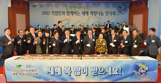¡°»õÇØº¹¸¹ÀÌ ¹ÞÀ¸¼¼¿ä¡± Âü¼®ÀÚµéÀº ¸ðµÎ°¡ ÇÔ²² ÀλçÇÏ¸ç ¹Ú¼ö·Î È´äÇß´Ù. Áö³ 1¿ù 18ÀÏ Ãæ³²ºÏºÎ»ó°øÈ¸ÀÇ¼Ò 10Ãþ ´ëȸÀǽǿ¡¼ ¼øÃµÇâ´ë »êÇÐÇù·Â´Ü(´ÜÀå ±èÇйÎ)°ú ¸µÅ©»ç¾÷´ÜÀÌ ÁÖ°üÀ¸·Î ¿¸° ¡®2013 ±â¾÷Àΰú ÇÔ²²ÇÏ´Â »õÇØ Èñ¸Á³ª´® Àλçȸ¡¯ ÀÚ¸®¿¡¼´Ù.