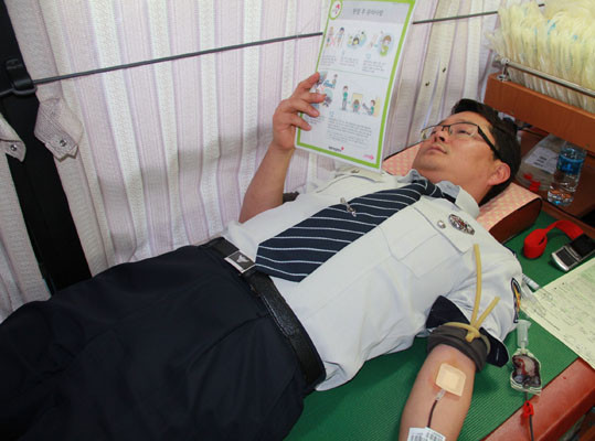 À̳¯ ÇåÇ÷¿¡ Âü¿©ÇÑ °æÂû °ü°èÀÚ´Â ¡°¼öÇ÷¿ë Ç÷¾×¼ö±ÞÀÌ ¸ðÀÚ¶ó´Â ½Ã±â¿¡ Á÷¿øµé°ú °°ÀÌ ÇåÇ÷¿¡ Âü¿©ÇØ Åõº´ÁßÀÎ ¾î¸°ÀÌ¿Í ²À ÇÊ¿äÇÑ È¯ÀÚ µî »çȸÀû ¾àÀÚ¿¡°Ô »ç¶ûÀ» ³ª´©¾î ÁÙ ¼ö ÀÖ¾î ¹«Ã´ ±â»Ú´Ù¡±´Â ¸»°ú ÇÔ²², ¡°¾î·Á¿î ¶§ Àϼö·Ï ¼·Î µ½´Â »çȸ ºÐÀ§±â°¡ Á¶¼ºµÇ´Â °è±â°¡ µÇ±â¸¦ ¹Ù¶õ´Ù¡±°í ¸»Çß´Ù.
