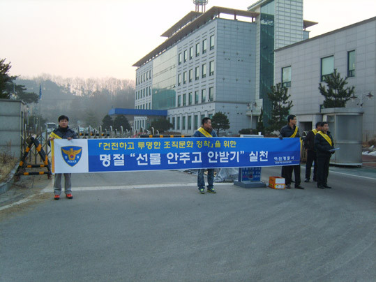 ¸íÀý ¼±¹° ¾ÈÁÖ°í ¾È¹Þ±â ½ÇõÀº °ÇÀüÇϰí Åõ¸íÇÑ Á¶Á÷¹®È Á¤Âø ÀÏȯÀ¸·Î ¾Æ»ê°æÂû Àü Á÷¿øÀÌ »ó´ë¹æÀÇ ÁöÀ§¿Í ¼±¹°ÀÇ ¸ñÀû¿¡ »ó°ü¾øÀÌ ÀÏüÀÇ ¸íÀý ¼±¹°À» ÁÖ°í¹ÞÁö ¾Ê´Â °ÍÀ¸·Î, ¾Æ»ê°æÂû¼¿¡¼´Â ¼³ ¸íÀý ¼±¹° ´ë½Å ¹®ÀÚ·Î ´ö´ã ³ª´©±â ¿îµ¿À» ÆîÄ¡°í ÀÖ´Ù.