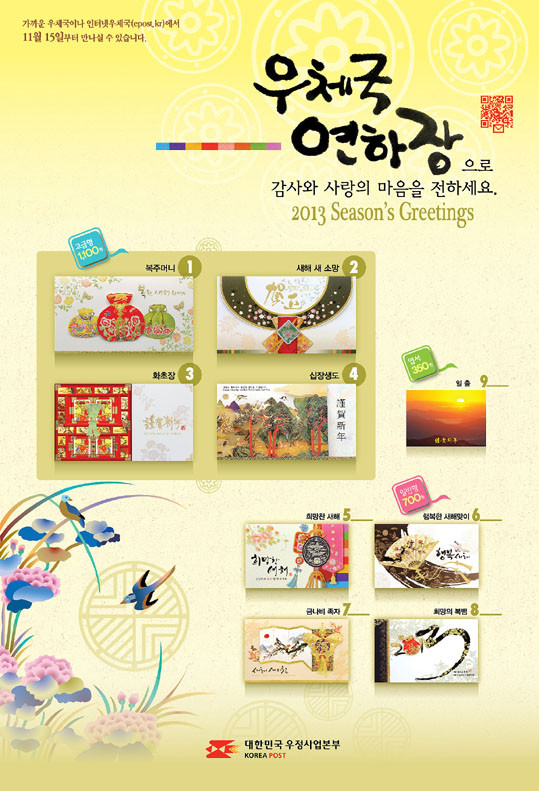 Á¾·ù´Â °í±ÞÄ«µå 4Á¾, ÀϹÝÄ«µå 4Á¾, ¿±¼ 1Á¾À¸·Î ¸ðµÎ 9Á¾À̸ç, ÆÇ¸Å°¡°ÝÀº °í±ÞÄ«µå 1õ100¿ø, ÀϹÝÄ«µå 700¿ø, ¿±¼ 350¿øÀ¸·Î Àü±¹¿ìü±¹°ú ÀÎÅͳÝ(www.epost.go.kr)¿¡¼ ±¸ÀÔÀÌ °¡´ÉÇÏ´Ù.