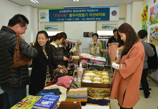 Áö³ 11¿ù 26ÀϺÎÅÍ 29ÀϱîÁö ÀÌ ´ëÇÐ Æò»ý±³À°ÇкΠ»çȸº¹ÁöÇÐ Àü°ø ¼ºÀÎ ÇлýµéÀÌ ÁÖÃàÀ» ÀÌ·é Çмú¿¬±¸ µ¿¾Æ¸® ¡®Àººû»ç¶û¡¯ ȸ¿ø 30¿©¸íÀÌ ÀڽŵéÀº ¹°·Ð, Æò»ý±³À°Çкλýµé·ÎºÎÅÍ ±âÁõ¹ÞÀº ÀÇ·ù(200¹ú), °¡¹æ(20°³), Ã¥(40±Ç), ÁÖ¹æ¿ëǰ(40°³) µî 350¿© °¡ÁöÀÇ ¹°Ç°À» ±âÁõ¹Þ¾Æ ¹ÙÀÚȸ¸¦ ¿¾ú´Ù.