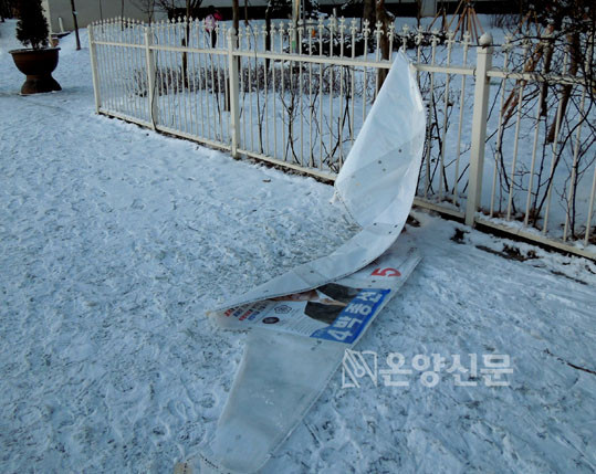 À̳¯ ¿ÀÀü ¼Òȸ¶À»¾ÆÆÄÆ® °ü¸®¼ÒÂÊ ¹ö½º ½º°Àå ºÎ±Ù ¿ïŸ¸®¿¡ °ÔøµÆ´ø ´ëÅë·É ¼±°Åº®º¸°¡ ³¡ºÎºÐ¸¸ °É·Á ÀÖ°í ´ëºÎºÐ ±æ¹Ù´Ú¿¡ ³»ÆØ°³ÃÄÁø ä ¹ß°ßµÆ´Ù.